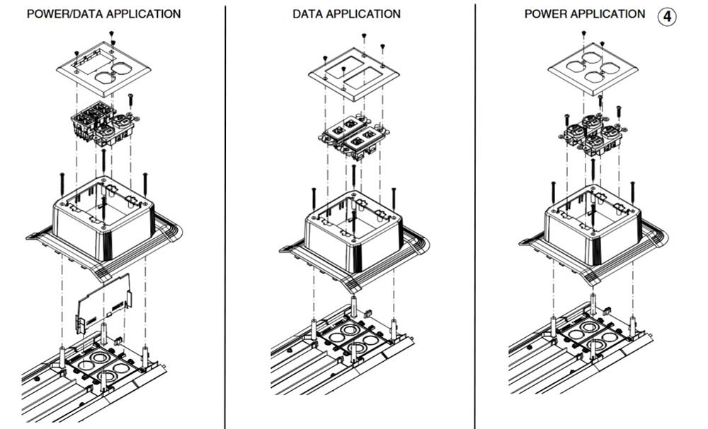 Cette boîte de couleur noire se fixe sur un rail PANDUIT AFR4BCBL6 et permet d'installer 2 plaques de branchements avec les connecteurs DATA ou vidéo ou électrique que vous désirez (les plaques et connecteurs ne sont pas inclus).