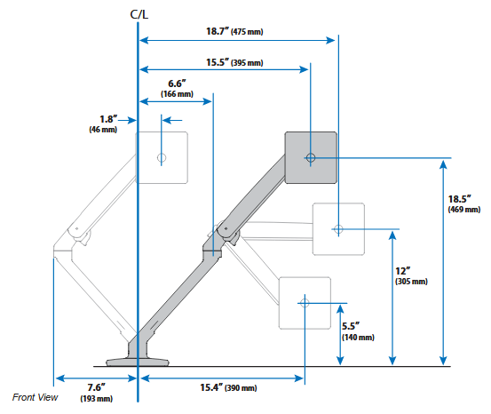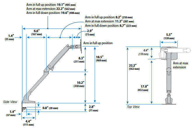 Économisez de l'espace sur votre bureau, qui est précieux, grâce au système de gestion des câbles et à l'épaisseur plus fine de 25% comparé au bras LX