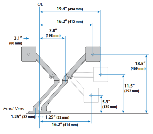 Économisez de l'espace sur votre bureau, qui est précieux, grâce au système de gestion des câbles et à l'épaisseur plus fine de 25% comparé au bras LX