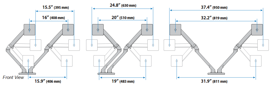 Le MXV, qui est élégant et léger, présente un design moderne en V dont l'ingénierie éprouvée crée une plateforme flexible et stable pour vos écrans présentés côte-à-côte.